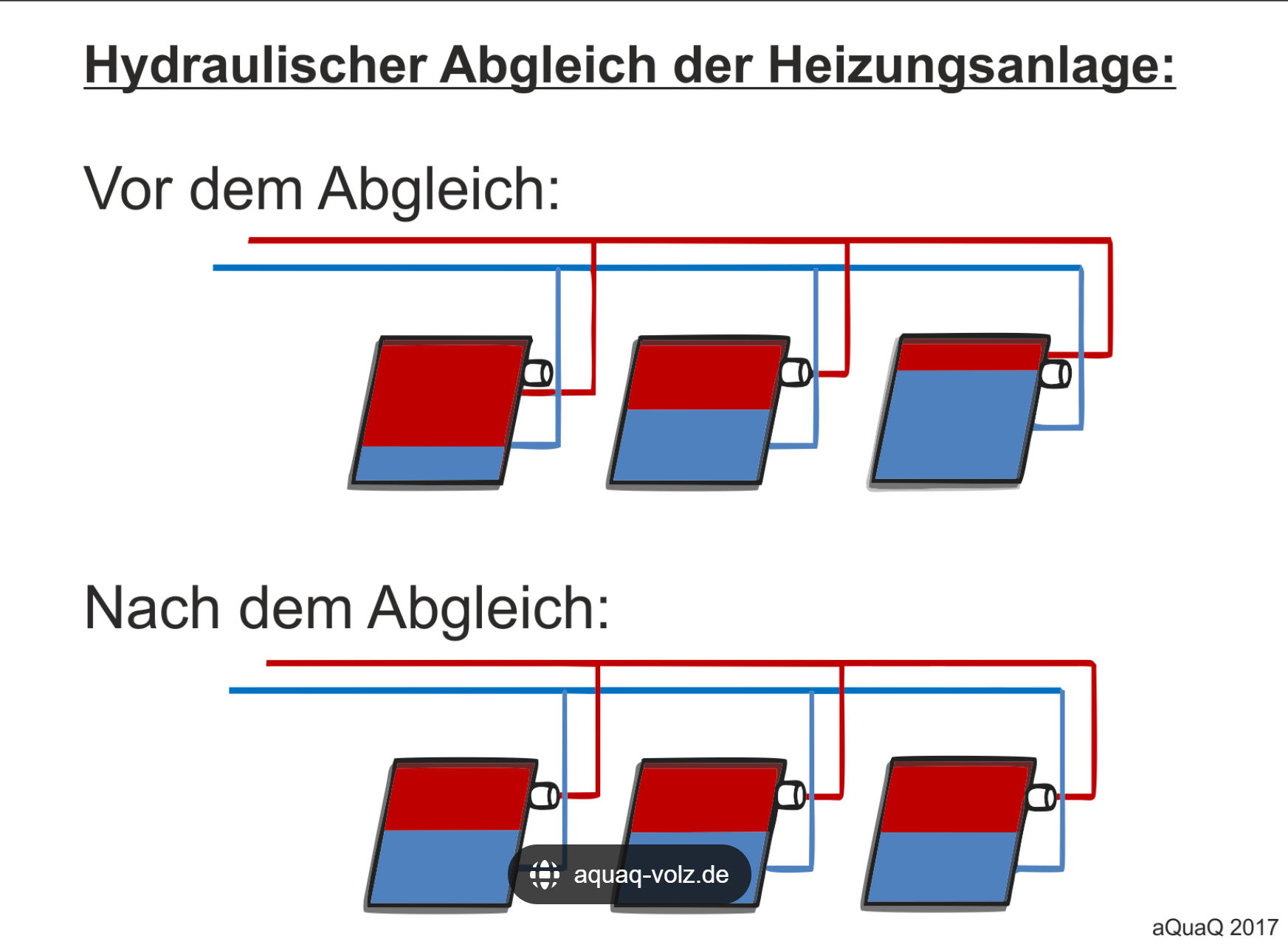 Beim hydraulischen Abgleich werden Heizkörper und Heizkreise so eingestellt, dass sie genau die benötigte Wassermenge erhalten. Das bedeutet:
